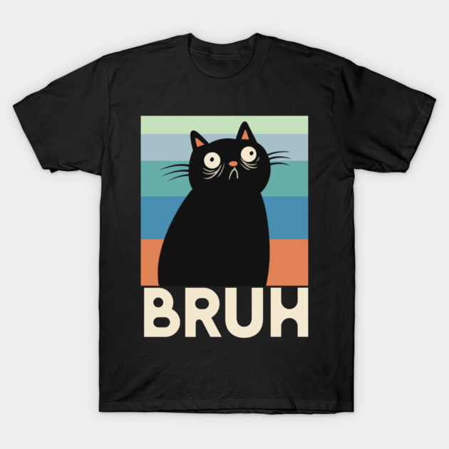 Bruh Cat Meme Design – Funny Shocked Cat Retro T-Shirt